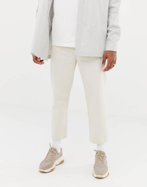 Asos white skater cropped jeans in ecru denim. Hit up asos design for everything from staple styles in classic washes that can be worn all day every day to spray on men s skinny jeans for your weekend wardrobe. Asos design premium wide leg jean in ecru. Asos white tall tapered cropped jeans in 14 oz black denim. Shop curve petite and tall fits from asos.